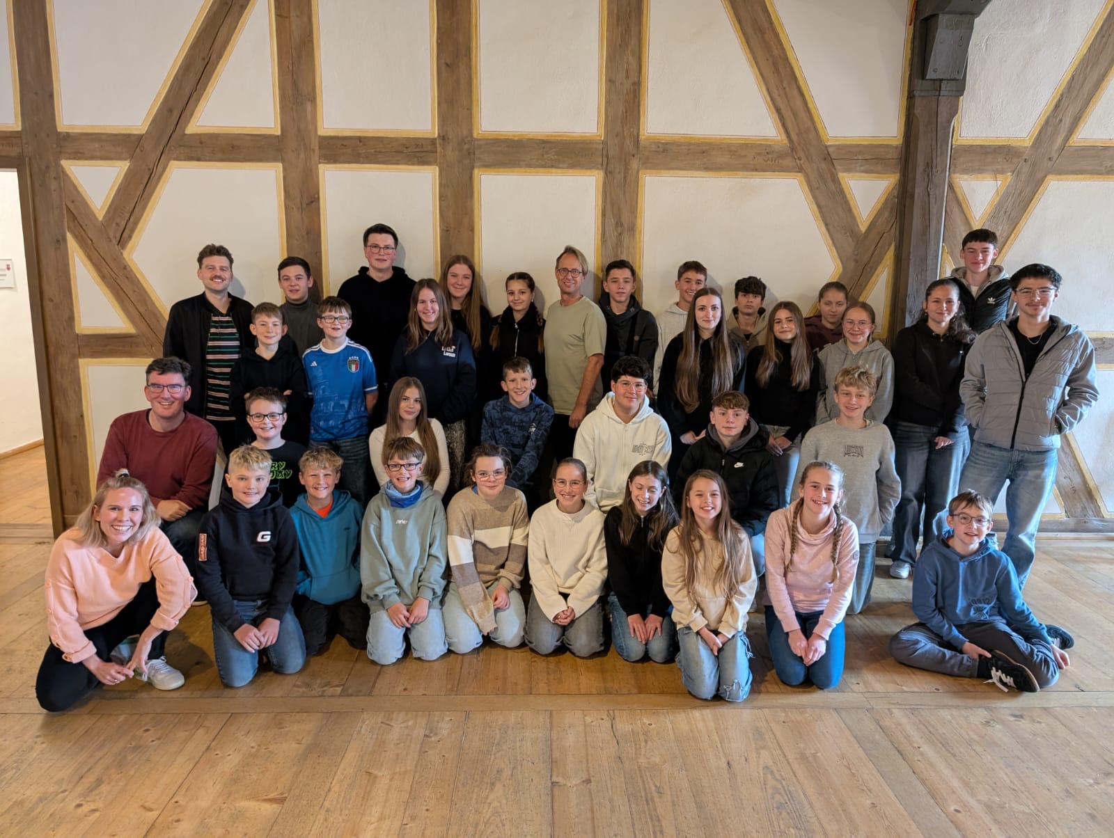 Natürlich kam auch das gemeinsame Miteinander nicht zu kurz: Beim gemeinsamen Mittagessen – traditionell gab es Schnitzel mit Kartoffelsalat – blieb viel Zeit für Austausch und neue Bekanntschaften. Zum Abschluss entstand noch ein Gruppenfoto, zu dem einige Schülerinnen und Schüler liebevoll gezwungen werden mussten 😉