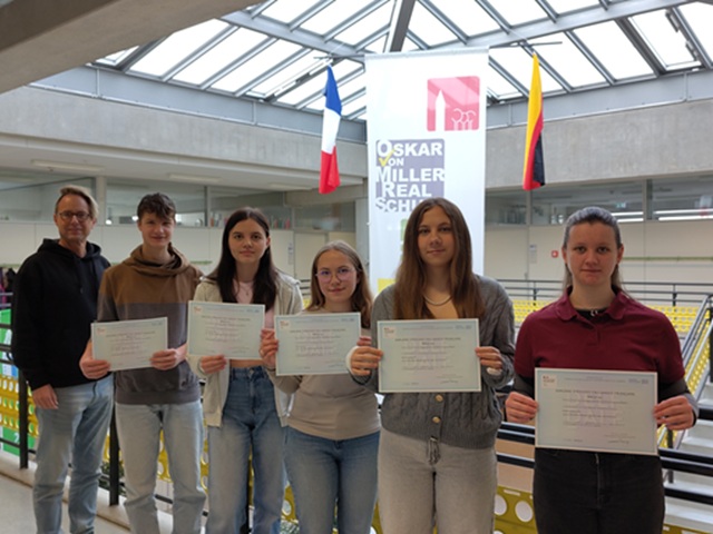 Wie immer um diese Jahreszeit – sozusagen als vorgezogenes Weihnachtsgeschenk – kamen die DELF-Zertifikate in der Schule an. Die dazugehörige Prüfung wurde bereits im letzten Schuljahr abgelegt. In der 9. Jahrgangsstufe ersetzt die Prüfung eine Schulaufgabe im Fach Französisch, in der 10. Jahrgangsstufe ist sie in die Abschlussprüfung integriert. Dies ist übrigens eine Besonderheit, die es so nur an bayerischen Realschulen gibt. Möchte man sich seine Sprachkenntnisse in den Niveaustufen A2 und/oder B1 offiziell bescheinigen lassen, muss man sich normalerweise ans Institut français in München wenden. Wir freuen uns, dass auch dieses Jahr viele Schülerinnen und Schüler diese Chance wahrnehmen und somit für ihren weiteren Lebensweg gut ausgerüstet sind.