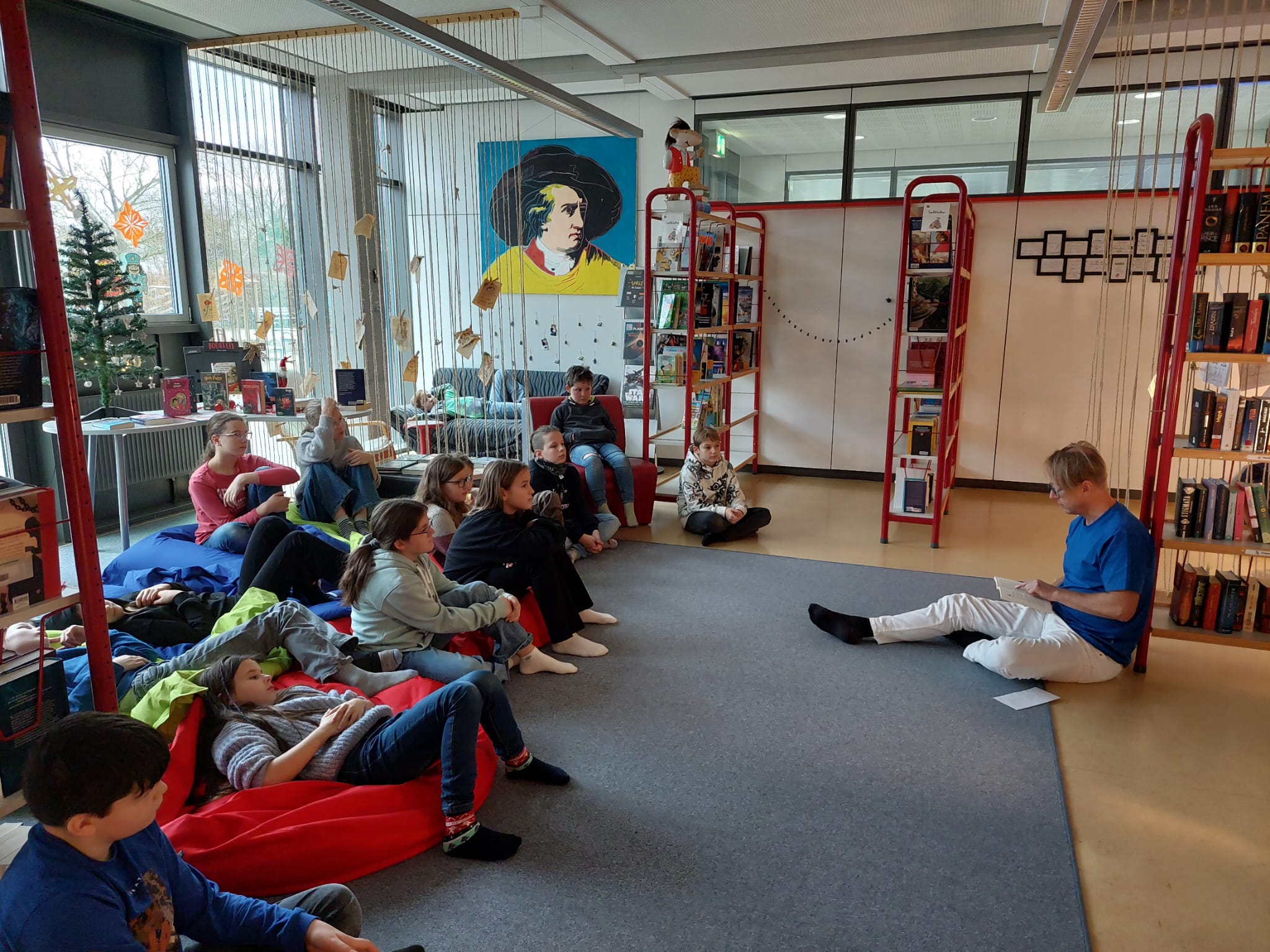 Aus diesem Grund veranstalten wir regelmäßig außerschulische Aktivitäten wie Autorenlesungen, Theaterbesuche, Vorlesewettbewerbe oder Buchvorstellungen etwa durch Frau Hochbauer, die Leiterin der Stadtbücherei Rothenburg.