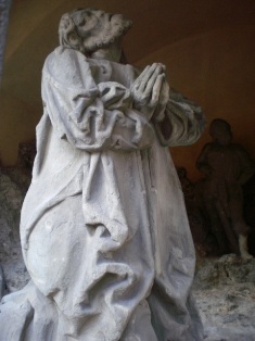 Eine Ölberggruppe stellt figürlich die biblische Szene dar, wie Jesus zusammen mit seinen Jüngern in der Nacht vor seiner Kreuzigung im Garten Gethsemane betet.
